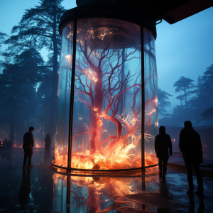 However, thinking this through, there are several challenges and moral concerns: - The genetic engineering needed to achieve this carries ecological risks, such as the spread of modified genes to wild populations. - The intensity of light needed to safely illuminate human environments might be beyond the capacity of currently understood bioluminescent systems without disturbing the growth or health of the trees. - This idea battles with the assumption that we always require artificial light sources in the night, disregarding the potential benefits of natural darkness for both ecosystems and human health.